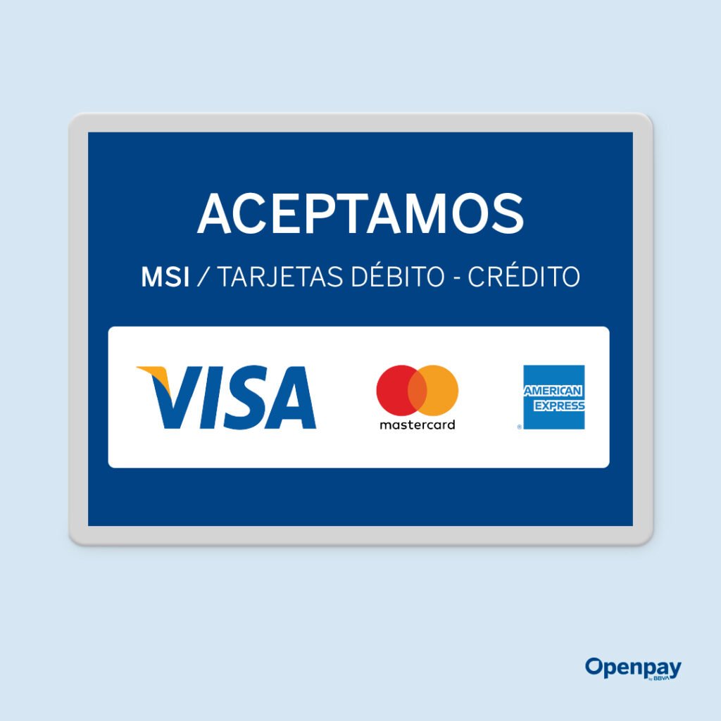 Ponemos a su disposición diversos métodos de pago que garantizan su seguridad de datos bancarios y personales. Los pagos seran procesados mediante Terminales Punto de Venta (TPV) de BBVA y la pasarela de pagos de Openpay con el protocolo de seguridad 3D Secure.